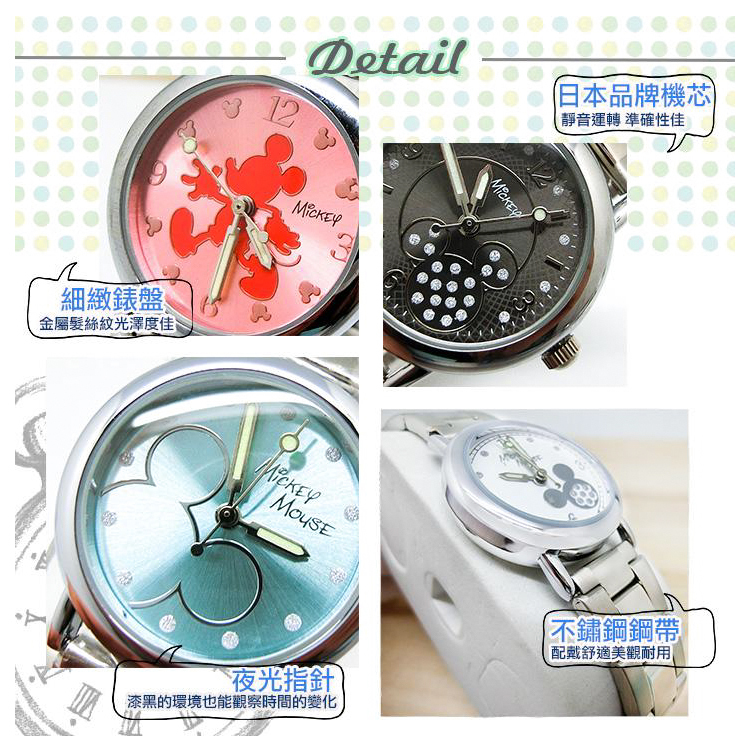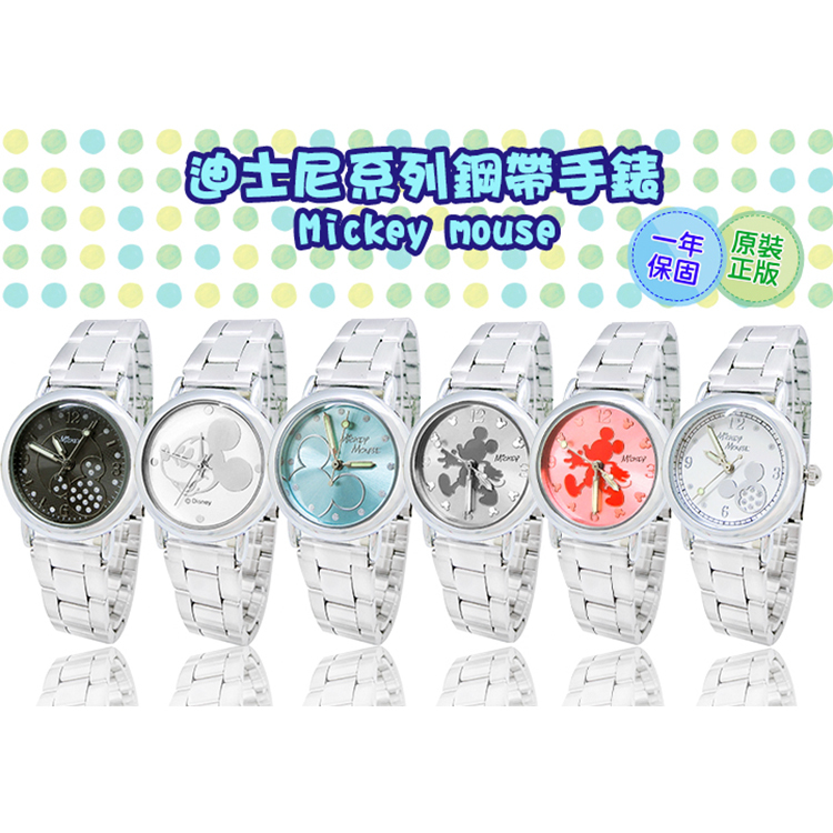 【迪士尼】鋼帶手錶-銀色剪影米奇